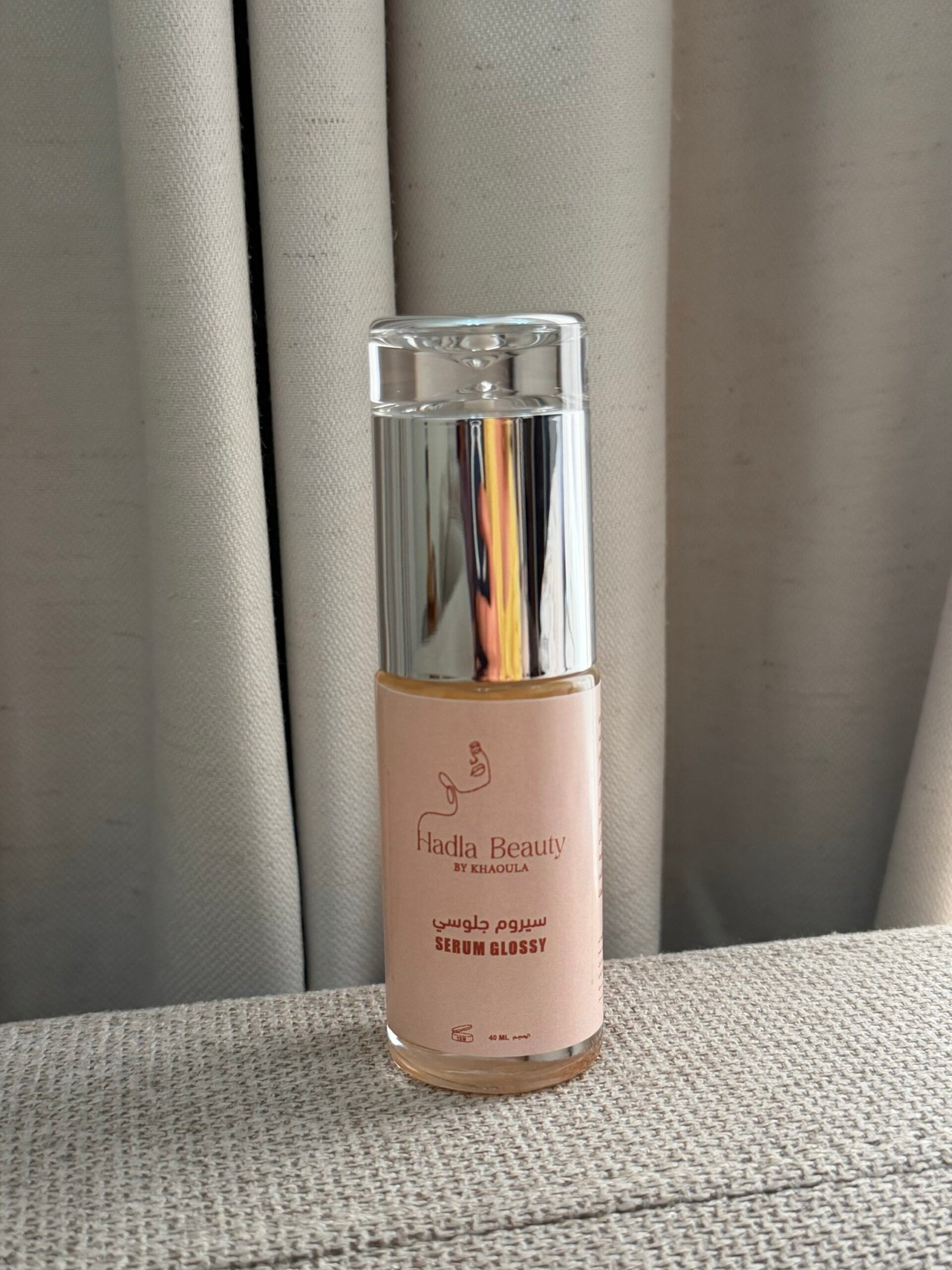 يُستخدم سيروم جلوسي على الوجه والرقبة. ثم تقومين بطبطه لكامل الوجه والرقبه